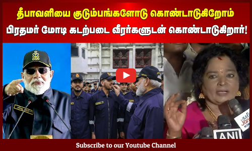 PM Modi | தீபாவளியை குடும்பங்களோடு கொண்டாடுகிறோம் | பிரதமர் மோடி கடற்படை வீரர்களுடன் கொண்டாடுகிறார்!