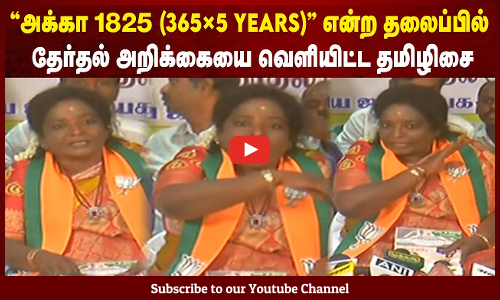 "அக்கா 1825 (365×5 years)" என்ற தலைப்பில் தேர்தல் அறிக்கையை வெளியிட்ட தமிழிசை