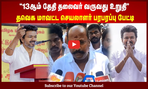 TVK | "13ஆம் தேதி தலைவர் வருவது உறுதி" தவெக மாவட்ட செயலாளர் பரபரப்பு பேட்டி| Maalaimalar
