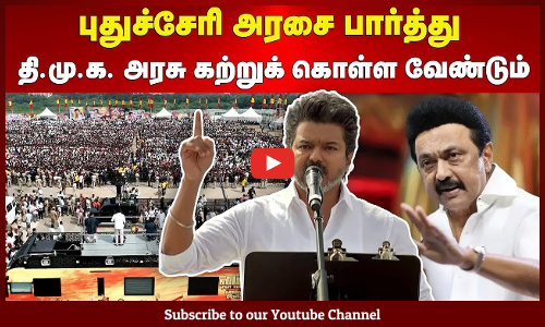 TVK Vijay | புதுச்சேரி அரசை பார்த்து தி.மு.க. அரசு கற்றுக் கொள்ள வேண்டும் | விஜய் | Maalaimalar
