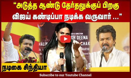 Vijay | அடுத்த ஆண்டு தேர்தலுக்குப் பிறகு விஜய் கண்டிப்பா நடிக்க வருவார் | நடிகை சிந்தியா
